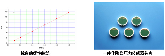 压力传感器的核心部件 —— 一体化陶瓷压力传感器压力感应芯片,以其超过100万次压力循环 ●极低的温度漂移●优良的线性精度●300%的过载压力。